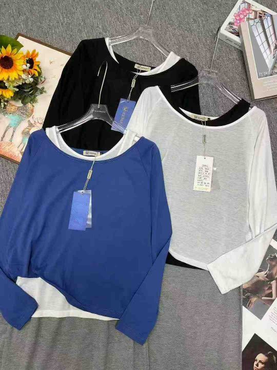 女装卫衣春秋季简约条纹圆领长袖款式套头拼色卫衣,码数S M L XL,独立包装...
