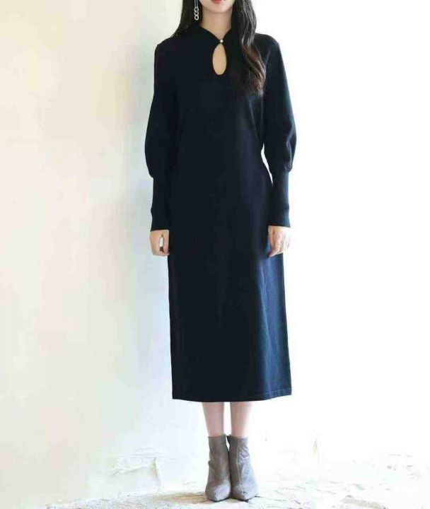 秋冬新款高品质法式复古设计款包芯纱大长款毛衣连衣裙...
