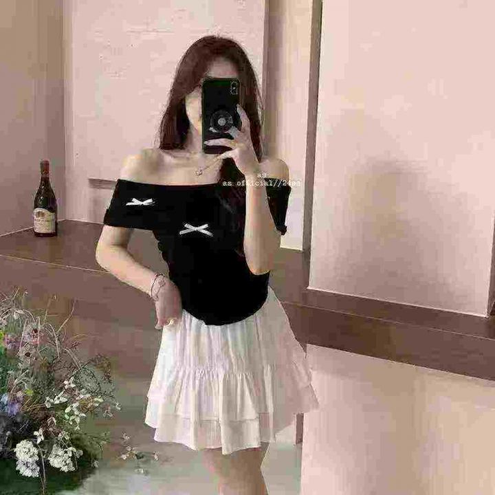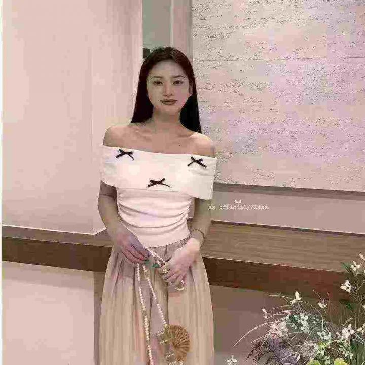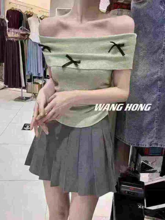 露肩一字领辣妹褶皱收腰针织短袖,品质很好,独立包装,均码,1000件左右,清5.5,分➕1