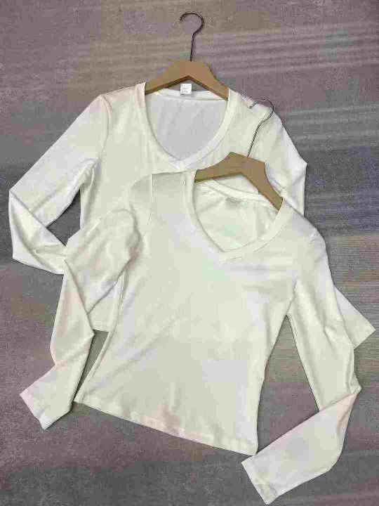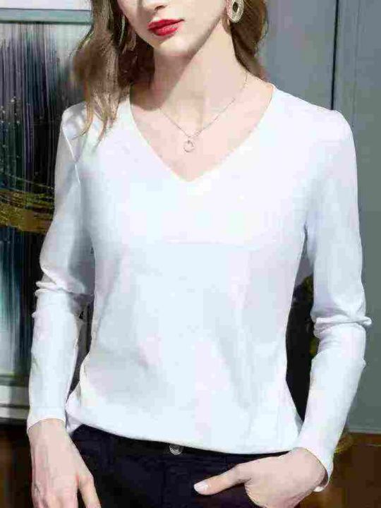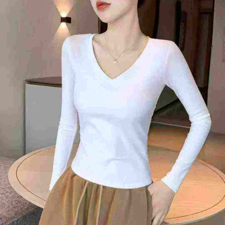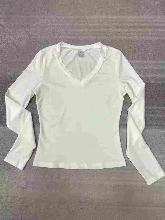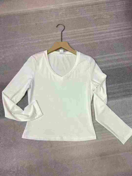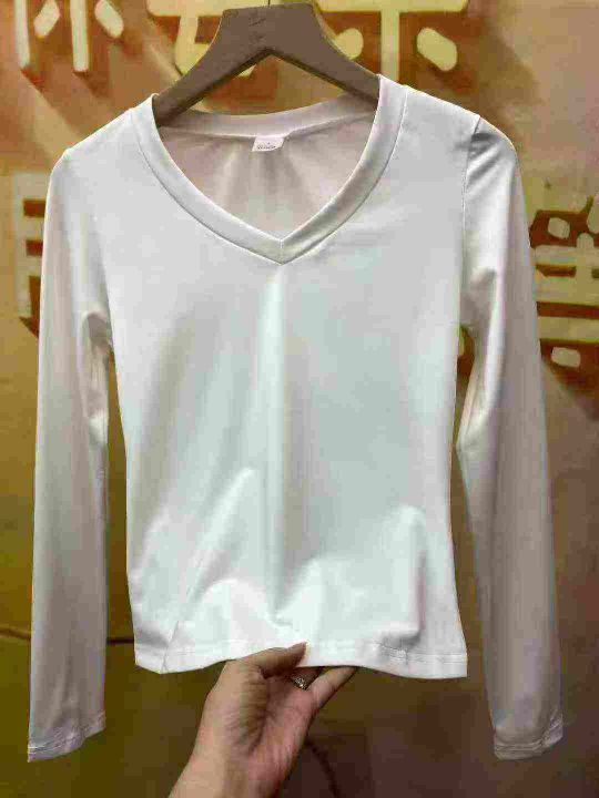 秋季正肩纯棉打底衫V领丝光棉白色长袖t恤女士内搭,独立包装质量很好S到XL码共165件,全清5.5一件