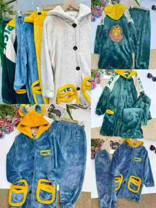 童装睡衣冬季加绒加厚款珊瑚绒男女童宝宝法兰绒秋冬天家居服,数量:385套,码数:10-12-14-16码,有独立包装,13.8元清