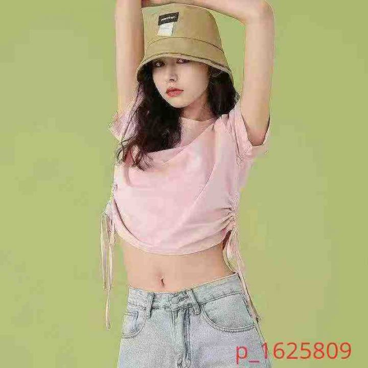 1000多件美式正肩抽绳甜美辣妹设计感小众减龄修身短款体恤,尺码:XL~4XL,面料柔软有弹力,后领包边包条,零次品,全清捡漏价5.8元,分