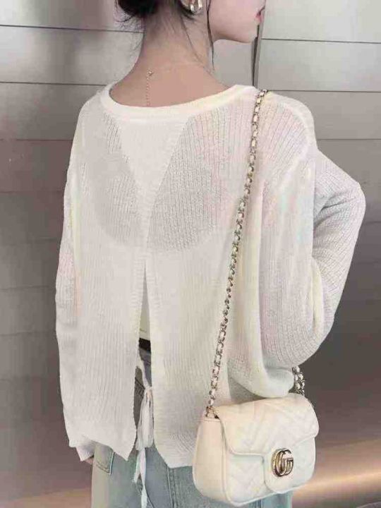 包芯纱秋冬女装新款发修身百搭长袖打底上衣设计感小心机镂空针织衫潮,独立...