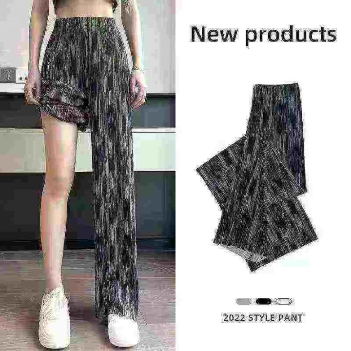 冰凉感直筒冰丝阔腿裤女夏季薄款休闲防蚊显瘦垂感扎染裤子,独立包装,码数M-2XL,数量496条,M码裤长90厘米,货号0915#54