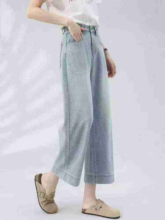 高腰垂感阔腿牛仔裤,辣妹牛仔阔腿裤新款复古显瘦宽松...