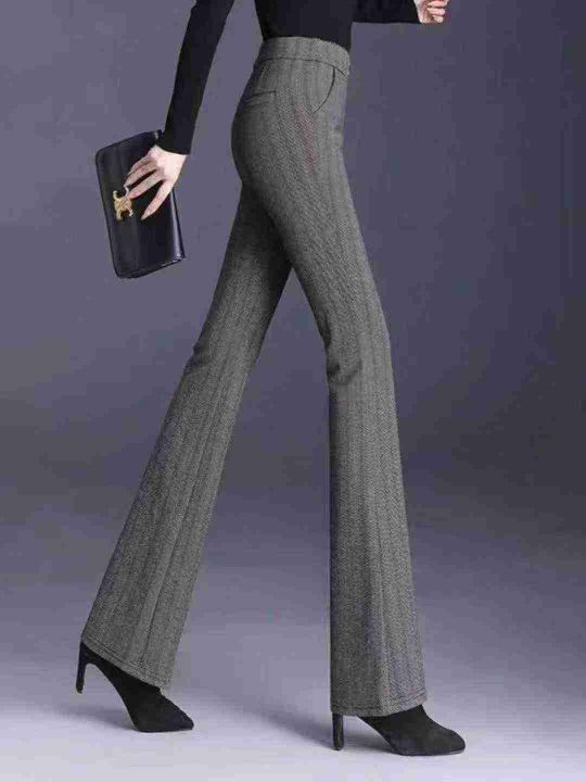 全清6.9 秋冬加绒女装条纹长裤,高腰显瘦喇叭裤,设...