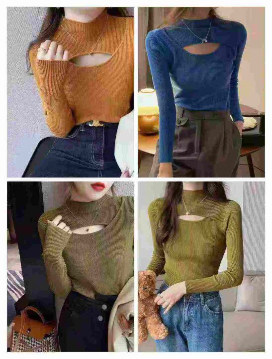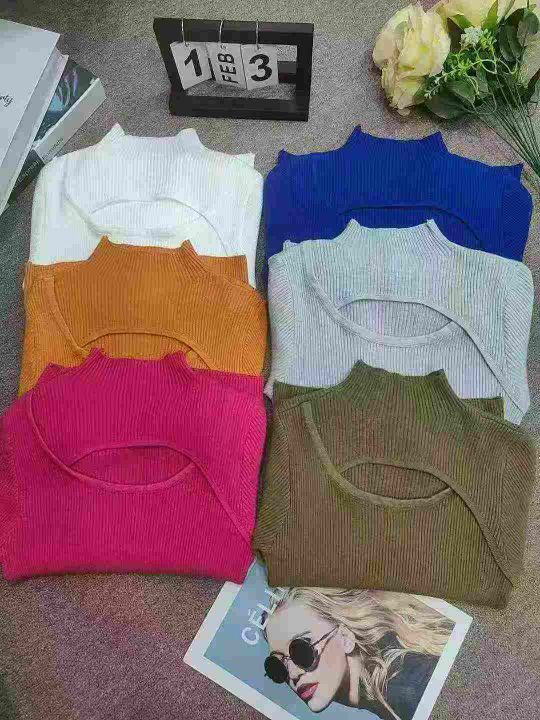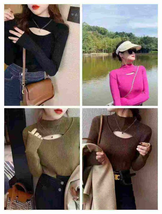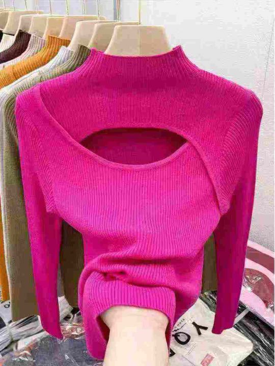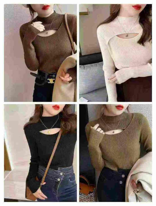 包芯纱秋冬女装新款发修身百搭长袖打底上衣设计感小心机镂空针织衫潮,独立包装,280件,清8.5,分➕1