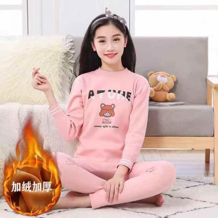 童装中大童婴儿绒保暖套装,码数140-170,大货3000套入库,200套一份25
