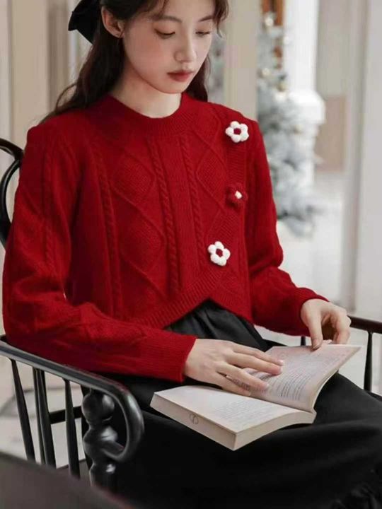 秋冬甜美花朵纽扣不规则减龄包芯纱毛衣,150件左右,均码可穿80-130斤,分货➕1