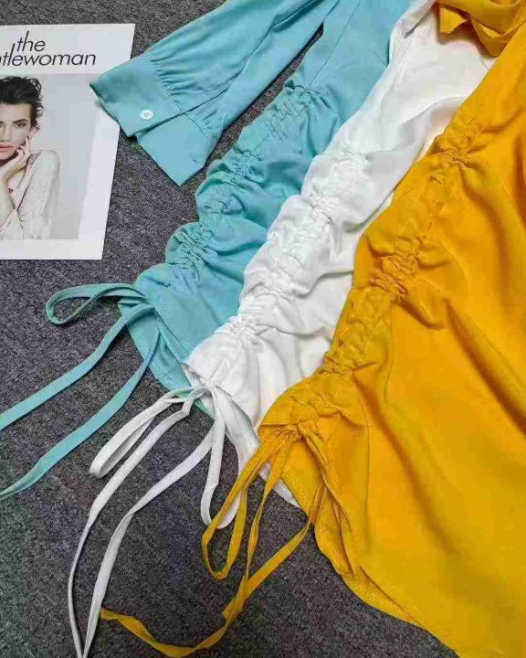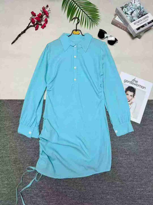 欧美时尚新款侧边抽绳纯色中长款衬衣连衣裙,数量1536条,码数S-2XL,整款多色,侧边有拉链设计,大货白色多,品质好,有独立包装。