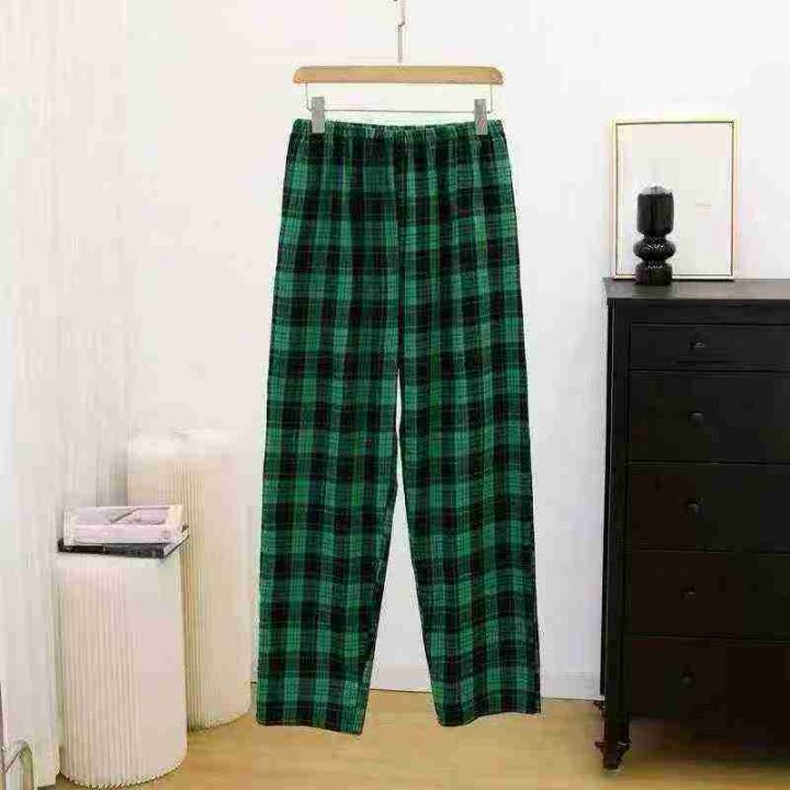 外贸格子花裤宽松高级简约女士家居睡裤百搭可外穿,独...