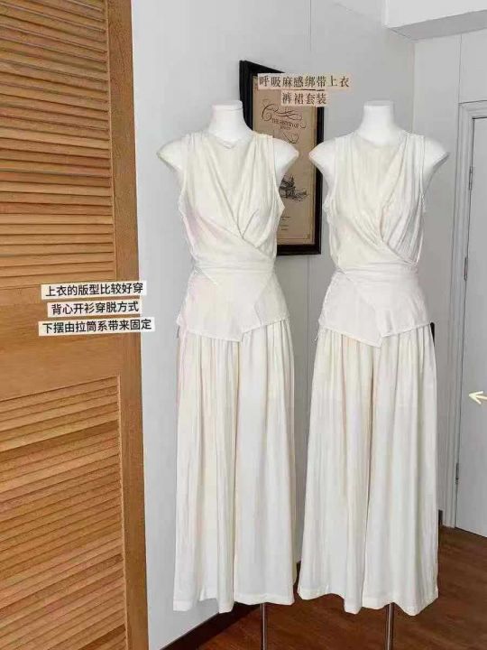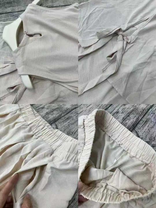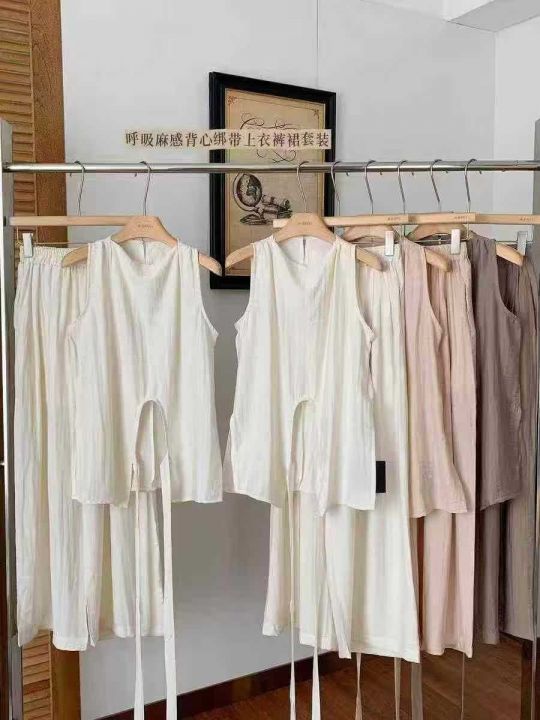 法式套装会呼吸麻感背心绑带上衣女夏松紧腰宽松休闲裤裙套装 315套全清14.8元 分货15.8元,码数S到XL,单款2色 ,独立包装。今年超流行一款套装,爆款!!!
