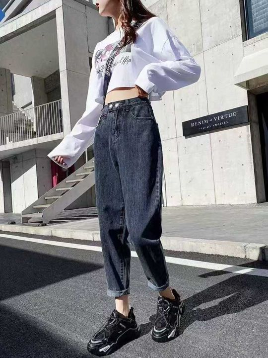 秋季新品洗水棉网红爆款半松紧腰牛仔老爹哈伦裤,独立包装带吊牌(3种裤长...