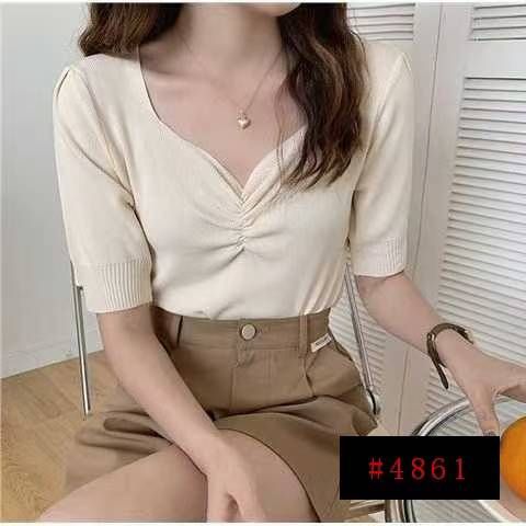 夏季新款温柔风宽松百搭冰丝复古V领针织T桖,独立包装均码面料软糯舒适弹力...