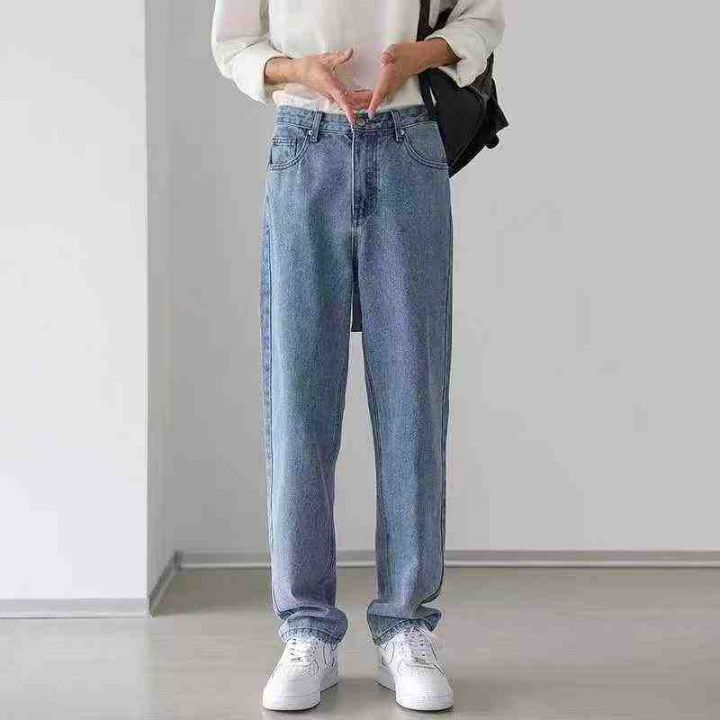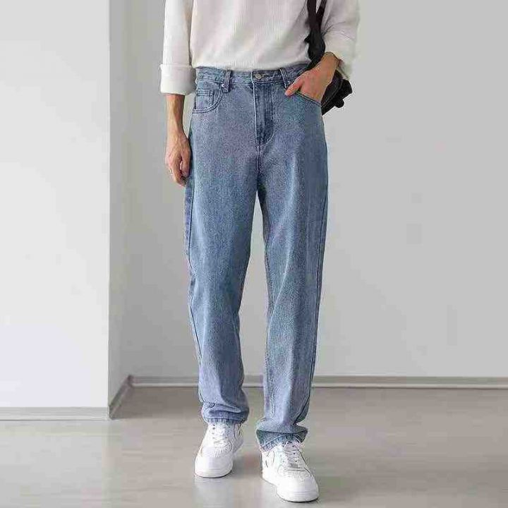 秋冬新款宽松净版简约商务休闲大码男士牛仔长裤,独立...