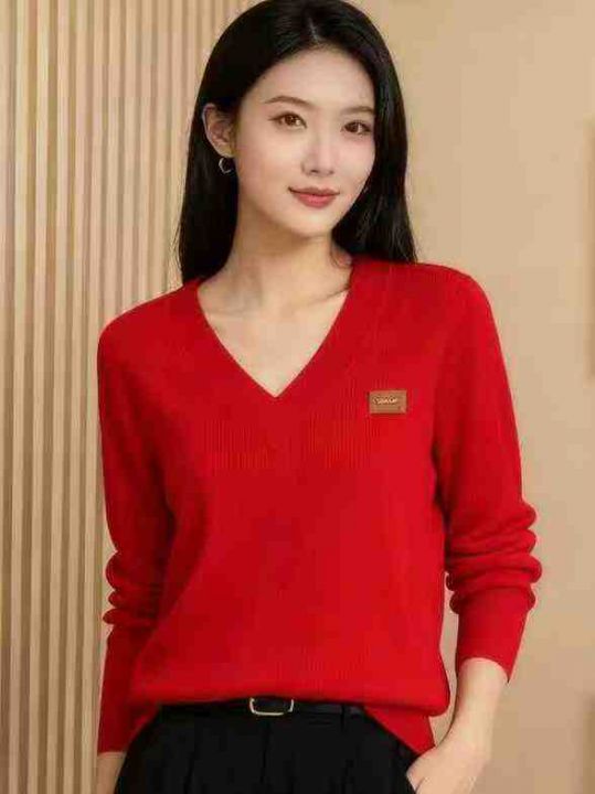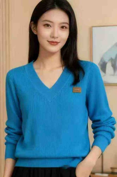 秋冬新款品牌原单宽松V领包芯纱套头毛衣,独立包装带...