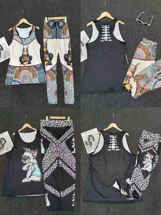 印花瑜伽套装性感跑步健身背心高腰运动紧身裤大码两件套,独立包装,S-5XL,大概1000套左右,全清7.8