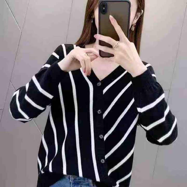秋冬新款欧洲站撞色条纹设计感V领不对称宽松休闲针织开衫,独立包装,均码宽松版面料软糯舒适弹力大,227件,全清6.9元超低价秒杀!分货加一!