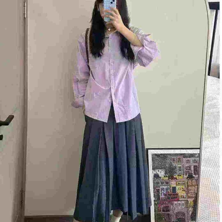 上新全清:10.8一件高级感紫色醋酸缎面通勤宽松长袖上衣,[爱心]70件左右,...
