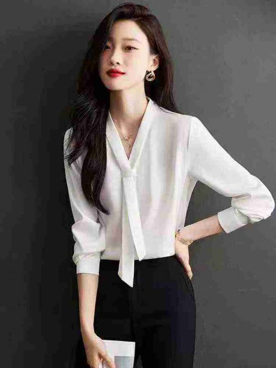高品质名媛洋气精致飘带雪纺衫高端百搭白色衬衫 ,单款单色,品质好,有独立包装,数量550件左右,码数S-4XL,全清7.8,分货+1