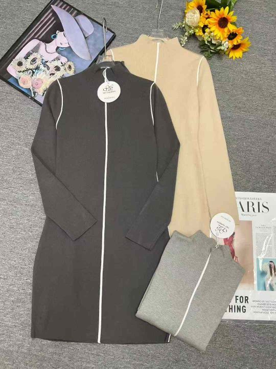 秋冬新款品牌原单法式复古中超款毛衣连衣裙,独立包装...
