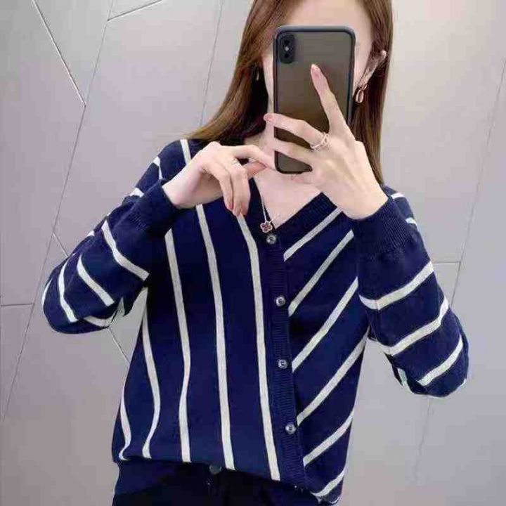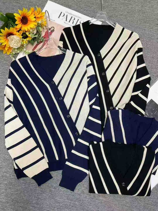 秋冬新款欧洲站撞色条纹设计感V领不对称宽松休闲针织开衫,独立包装,均码宽松版面料软糯舒适弹力大,227件,全清6.9元超低价秒杀!分货加一!