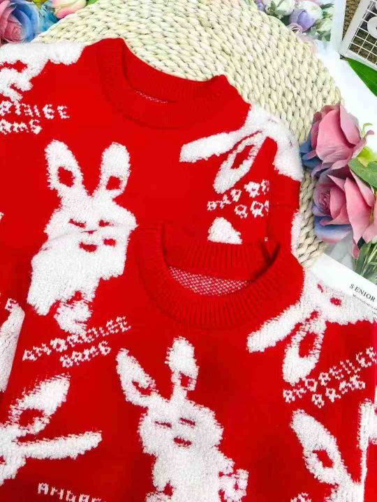 初秋新款宽松兔子刺绣本毛衣,总数量:165件,144件是童装,成人款21件,码数:100-120-140-2XL,有独立包装,7.5元清
