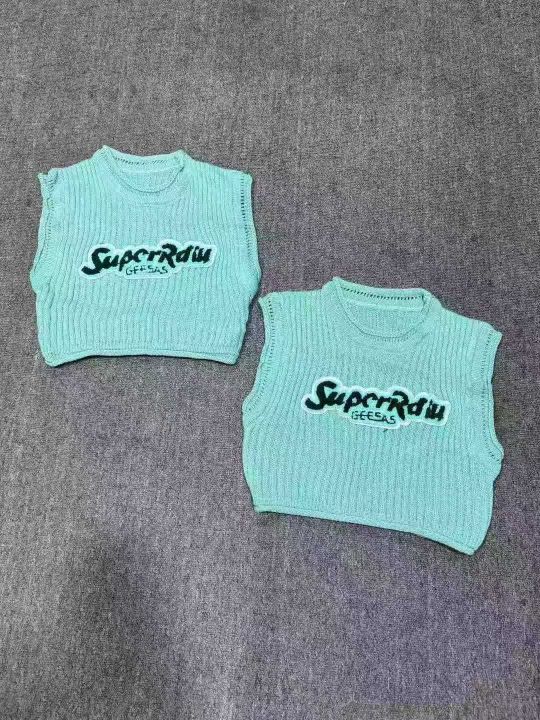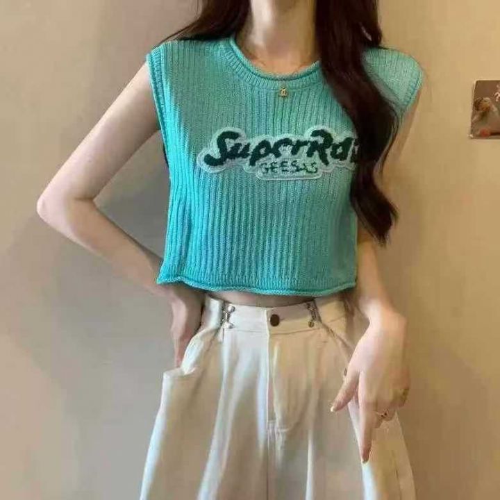 纯欲甜辣短款字母刺绣针织背心女夏季外穿宽松无袖t恤洋气小衫女,码数1-2码(sm码),数量196件