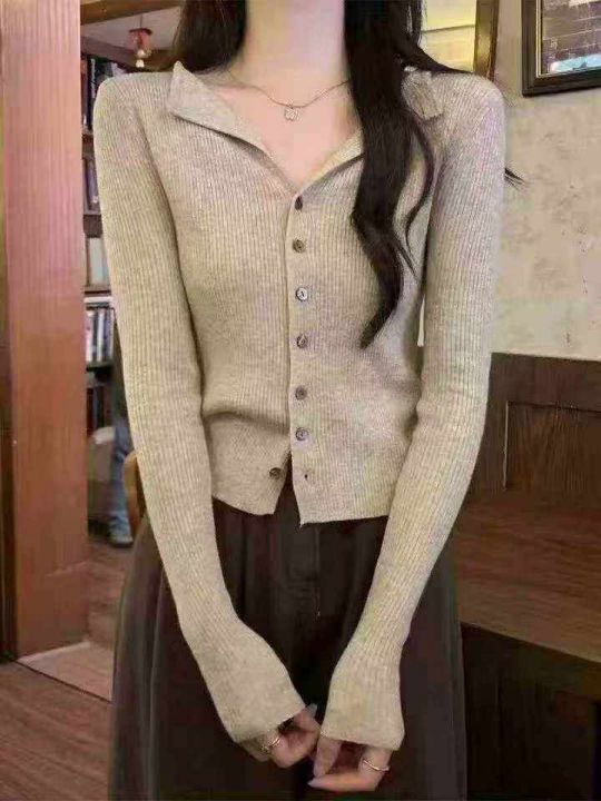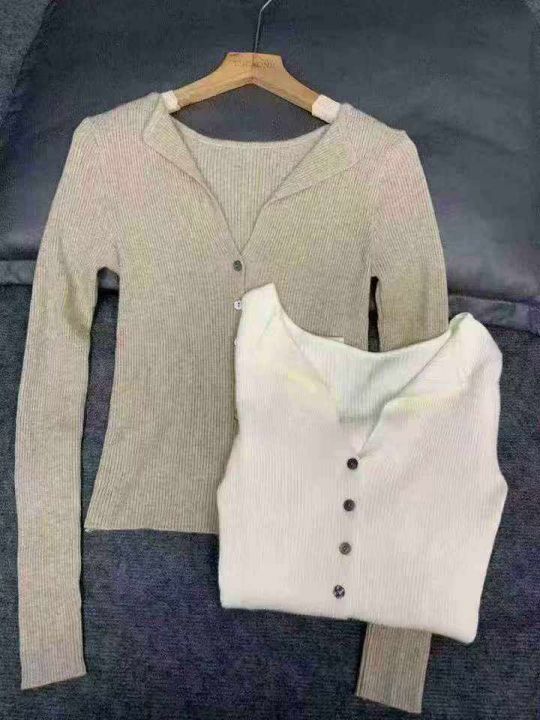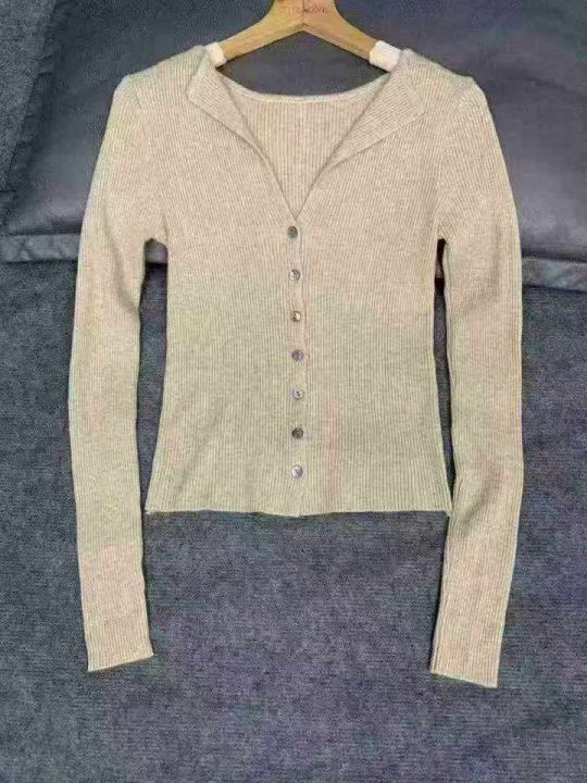 秋装新款v领针织内搭开衫女修身显瘦高级感毛衣打底衫2...