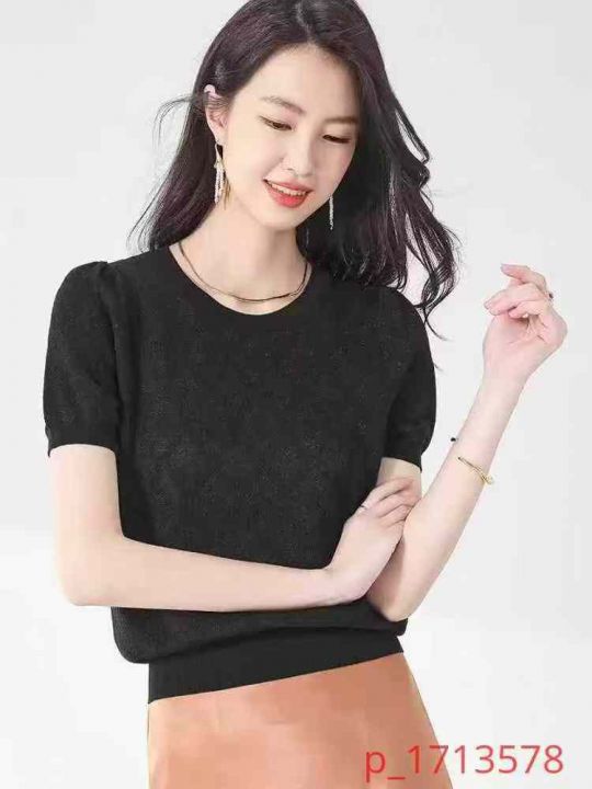 夏季新款宽松百搭设计款高弹力冰丝针织短袖,独立包装,均码面料软糯舒适弹...