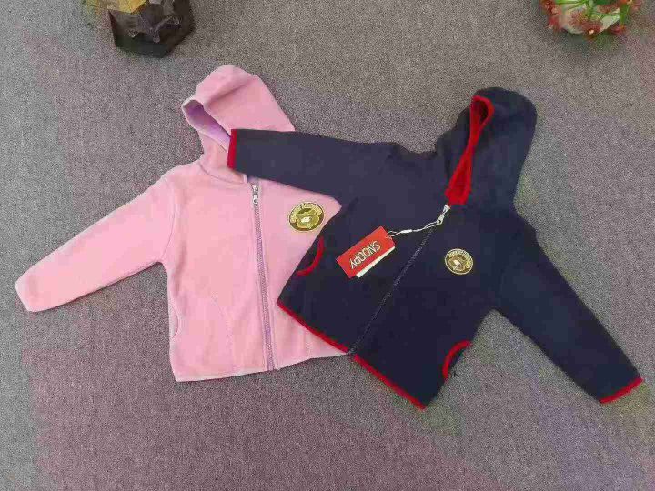 品牌童装摇粒绒带帽外套 数量2000件左右 尺码110--160 有三个品牌(史努比、巴拉巴拉、baby) 每个款都有四个颜色 可挑品牌出 独立包装带吊牌 货品干净整洁
