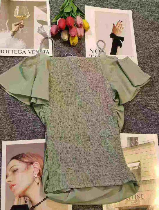 时尚独特绝美绿色荷叶边收腰显瘦上衣,[爱心]105件左右,款号7029,码数S-2XL,穿80-130斤,万佳档口货,原包装️无瑕疵,[666]实体店品质,分货加一