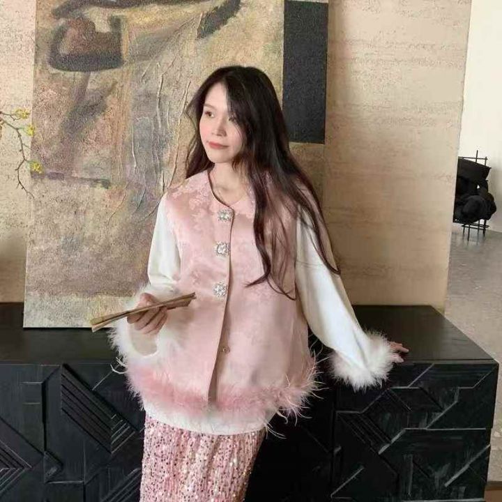 非遗提花织锦裹着蓬松夹棉,一扣一纹都是东方诗意。盘扣轻系,把江南的柔、朔风的暖都纳进衣身;羽毛边漾起灵动感,夹棉层牢牢锁住温煦。寒冬里穿它,日常秒变国风佳人,让雅致与温暖同频奔赴~