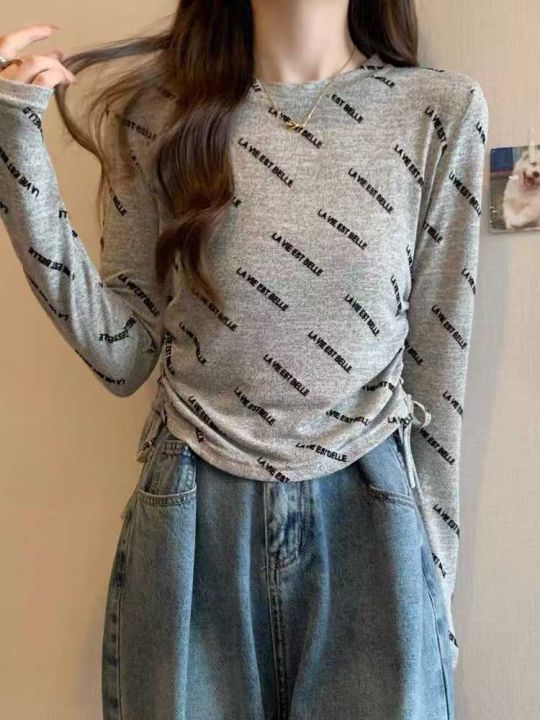 298件靓妹字母设计感百搭双侧抽绳针织上衣。面料柔软...