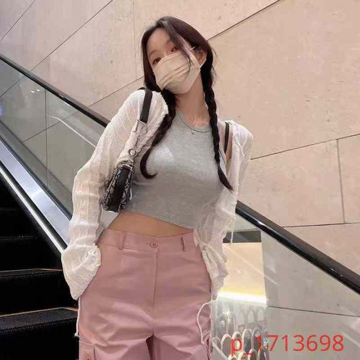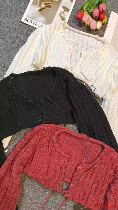 韩系螺纹高腰设计感镂空针织开衫,[爱心]60件左右,均码,穿80-120斤,[666]工厂原包装瑕疵 _@_@