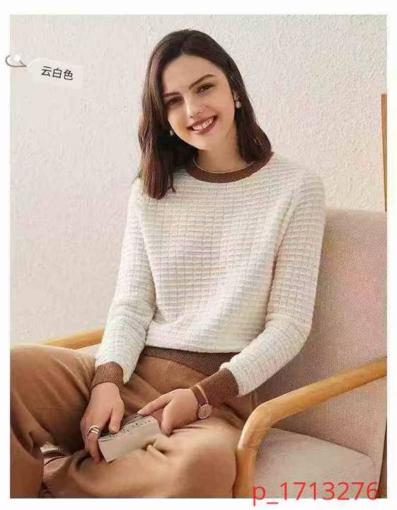 140多件新款秋冬撞色圆领方块格纹毛衣打底针织衫,均...