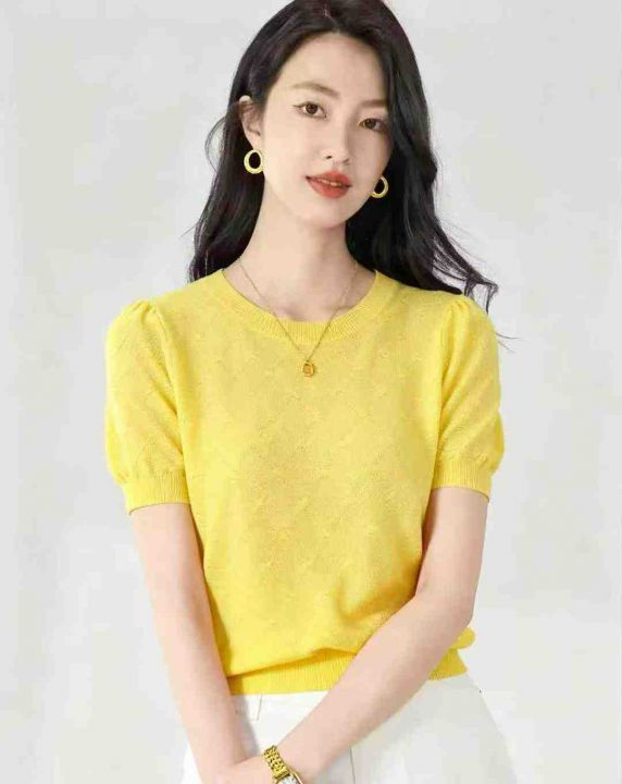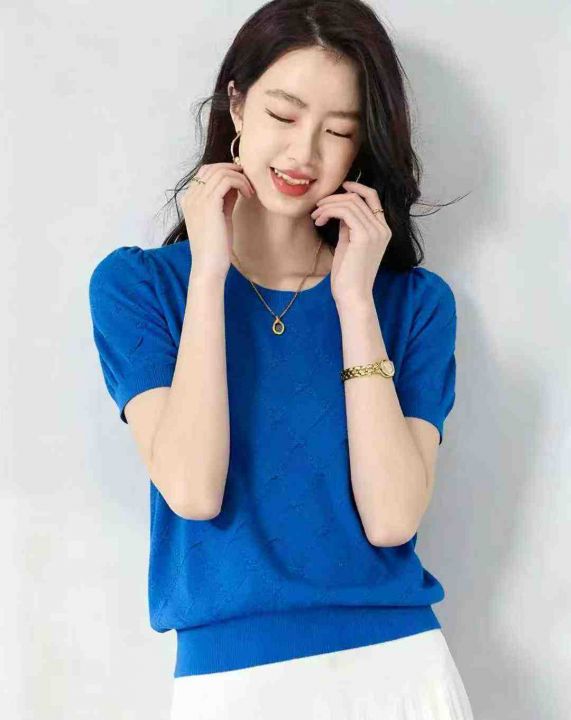 夏季新款宽松百搭设计款高弹力冰丝针织短袖,独立包装,均码面料软糯舒适弹力大,383件,全清5.9元超低价秒杀!分货加一!