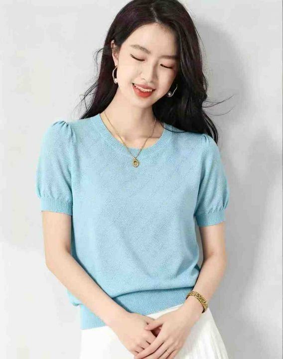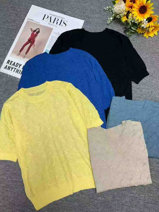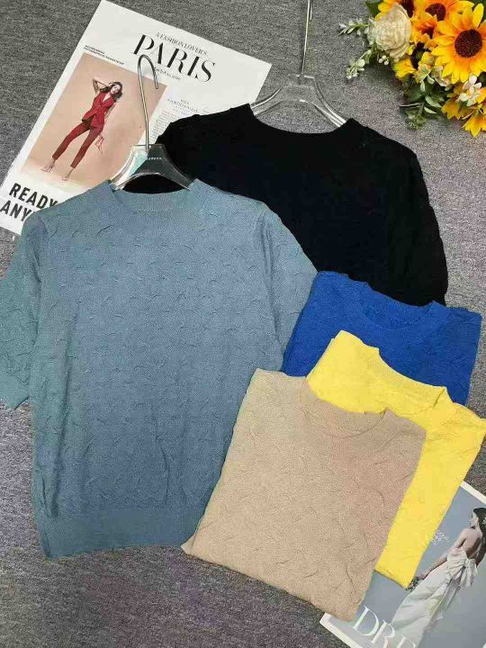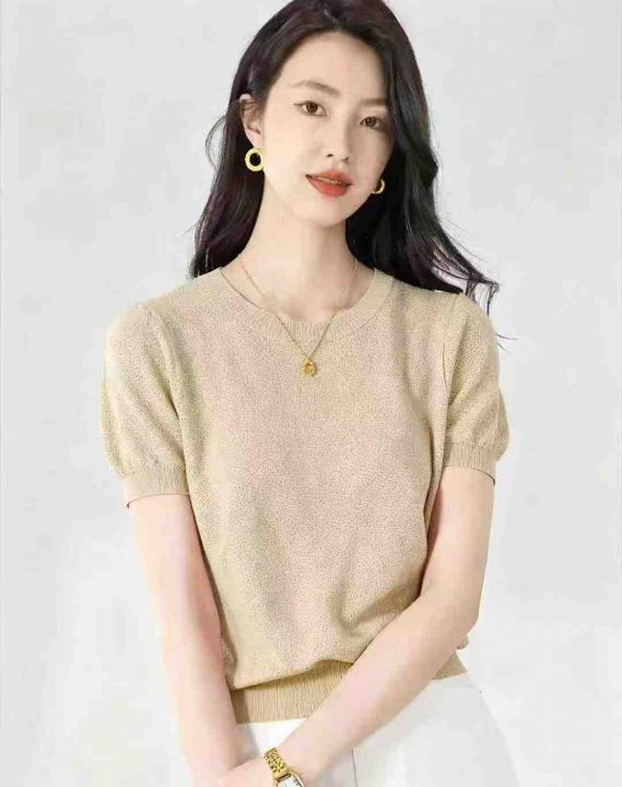 夏季新款宽松百搭设计款高弹力冰丝针织短袖,独立包装...
