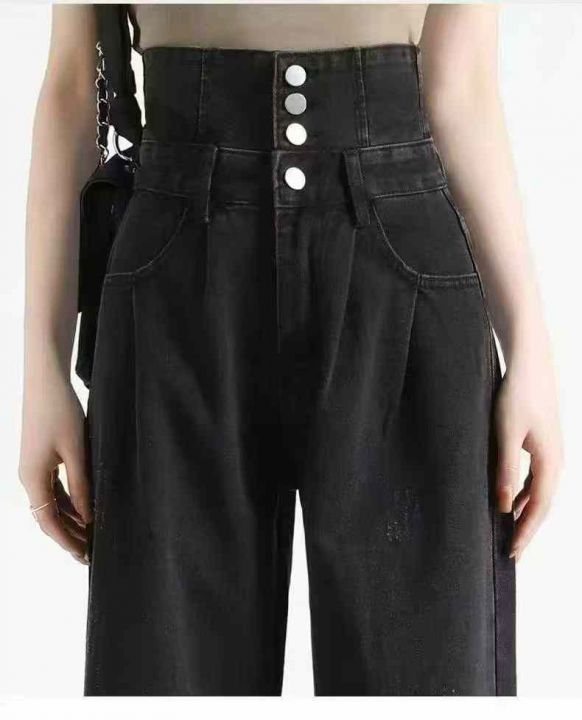 秋季新款女装洗水棉网红显瘦设计感高腰阔腿多扣牛仔裤...