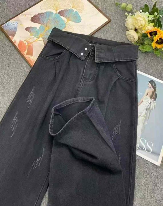 秋季新款女装洗水棉网红显瘦设计感高腰阔腿多扣牛仔裤,独立包装带吊牌,可穿80--110斤左右,300件,腾仓库,全清9.9元亏本处理!