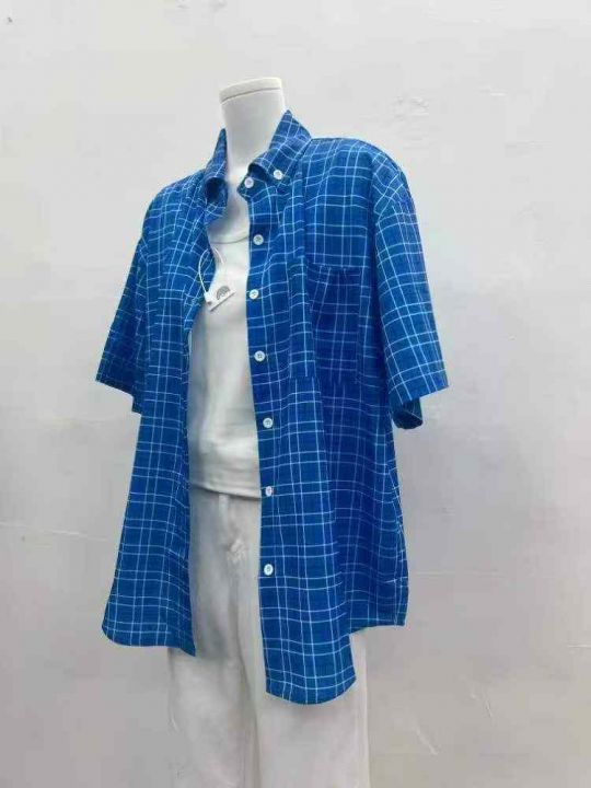 情侣格子衬衫198件6.9,情侣宽松版,领子带纽扣,有口...