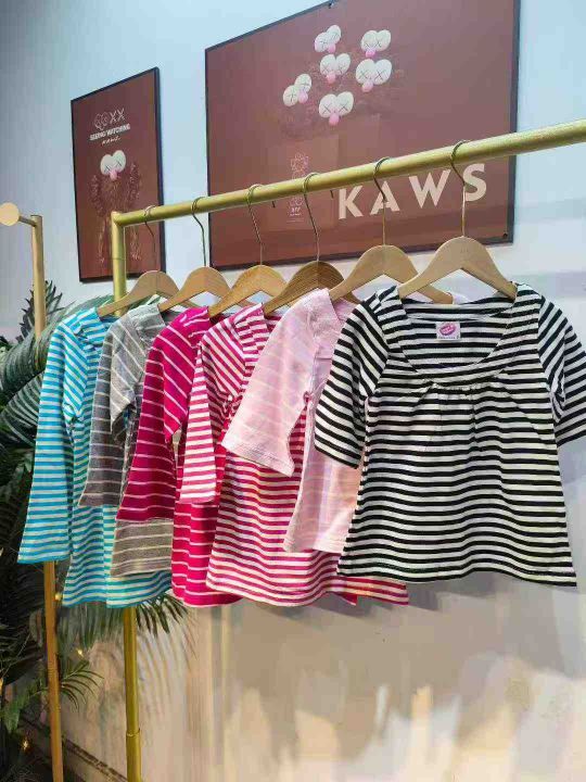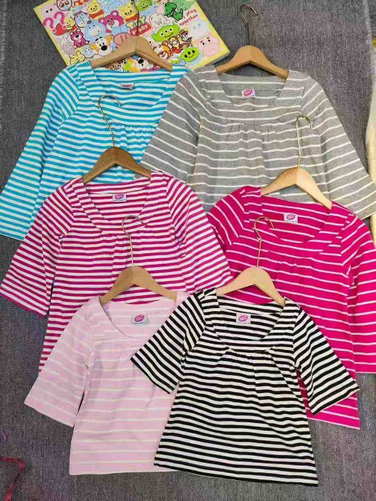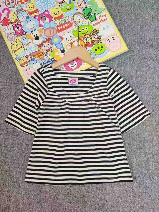 260件童装纯棉中袖条纹T 单款多色 后领包边包条,码数3-14码(100-160身高可穿)货品干净 防水袋装。