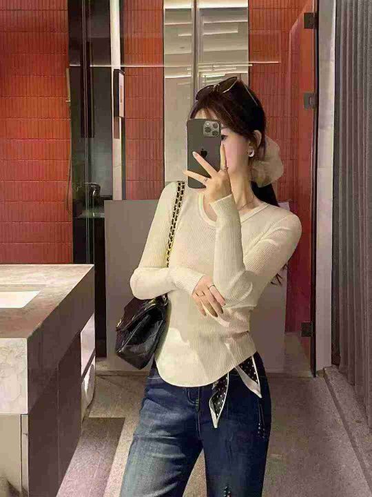 圆领坑条针织衫,单款多色,单穿打底都可,总数量 230 件左右,独立包装