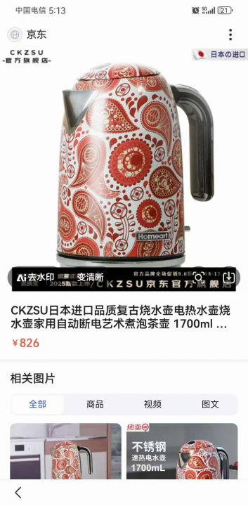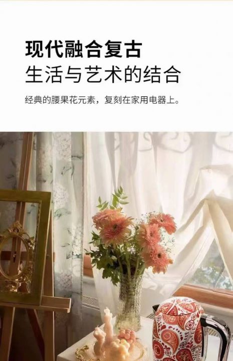 现代融合复古,生活与艺术的结合,经典腰果花元素,复刻在电热水壶上,桌面上的风景线[机智]