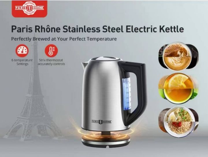 Paris Rhône电热水壶,触摸控制,6种温度设置,1.7L容量,Strix温控器,自动关闭断电功能,防干燥保护,保温功能,LED指示灯,可视水窗