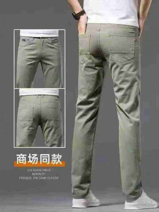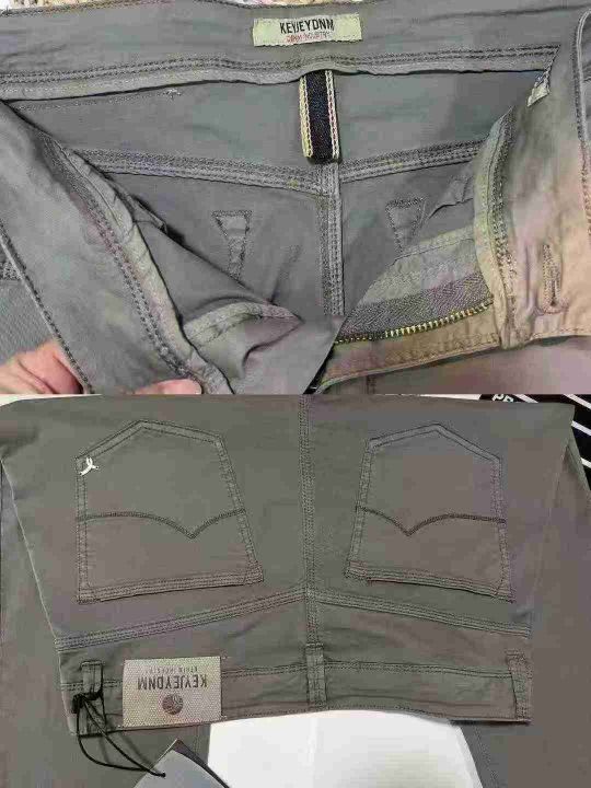 男士商务休闲裤,洗水棉面料,弹力大,内里包边,数量140条左右,单款军绿色,码数:欧码标44-54码(国内码30-35)独立包装吊牌,模特图供参考大概款式