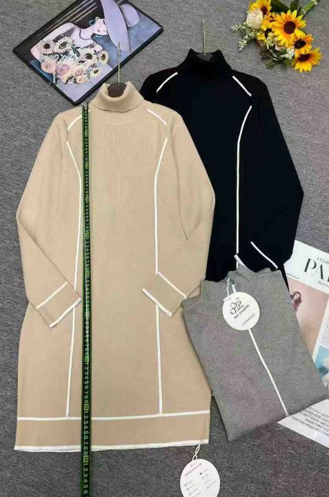 秋冬新款品牌原单法式复古中超款毛衣连衣裙,独立包装...