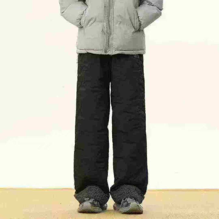 防寒休闲羊羔保暖裤男女冬季潮宽松葫芦纹防水直筒裤加...