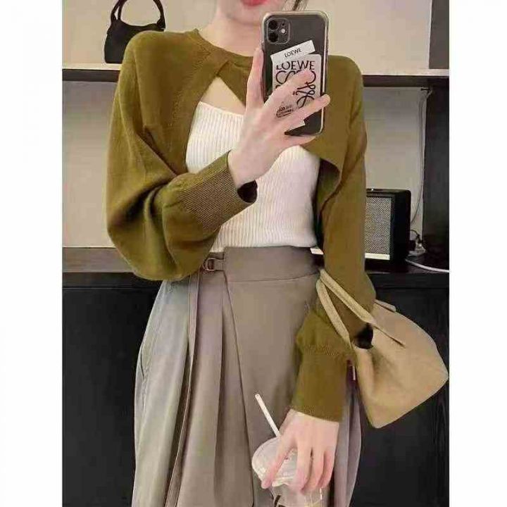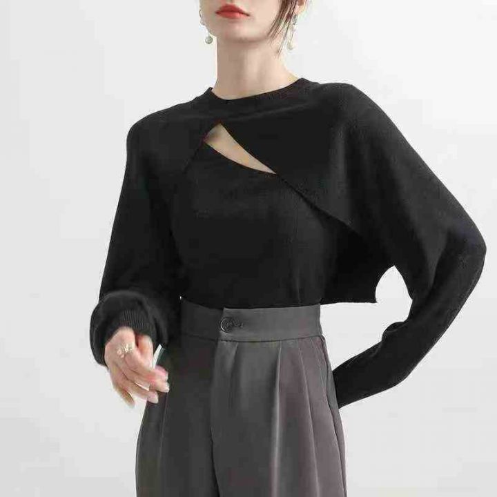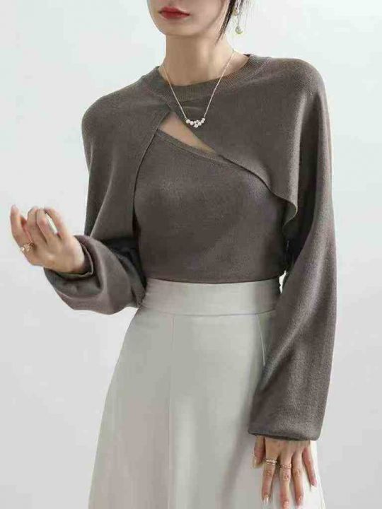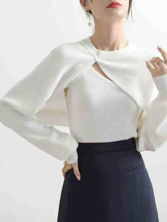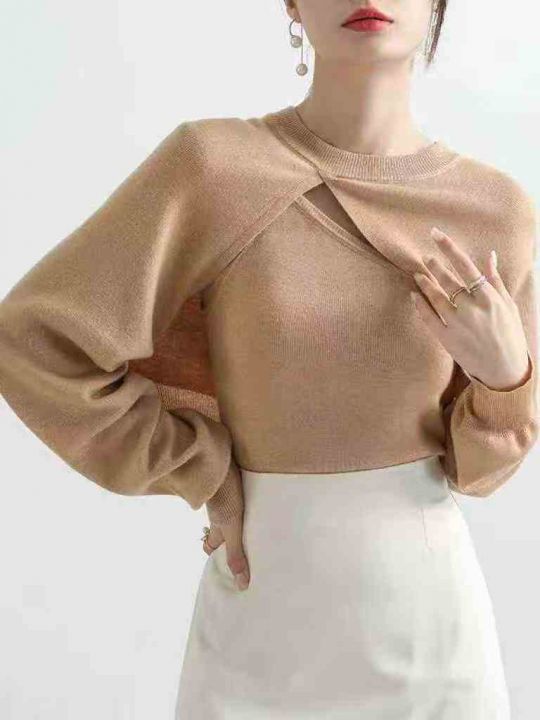 春秋款新款韩版显瘦简约纯色慵懒风包芯纱针织套头毛衣...