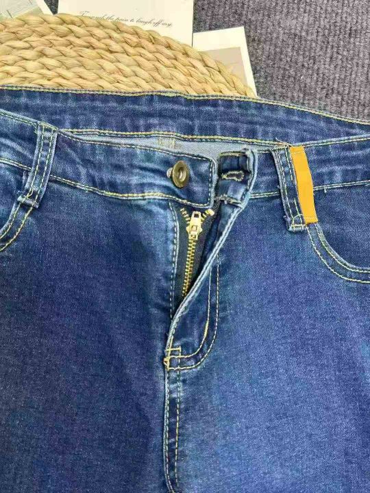 #Jeans wholesale 弯刀牛仔裤女士秋冬半松紧高腰长阔腿裤 宽松镰刀裤,单款...